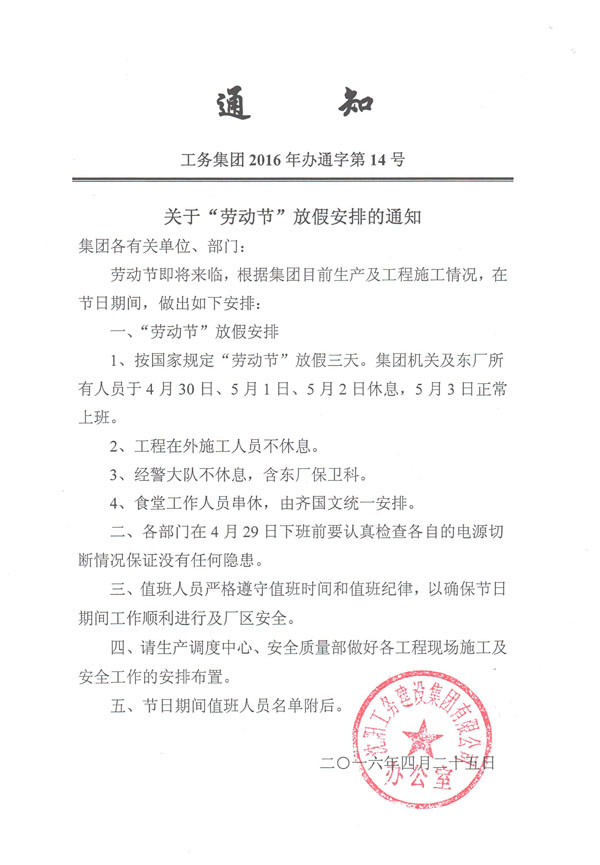 下一篇:工務(wù)集團(tuán)2016年辦通字第15號(hào)《關(guān)于確保“勞動(dòng)節(jié)”假期安全的...