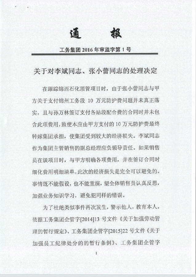 上一篇:工務(wù)集團(tuán)2016年審監(jiān)字第5號(hào)《關(guān)于對(duì)朱文帥同志的處理決定》...